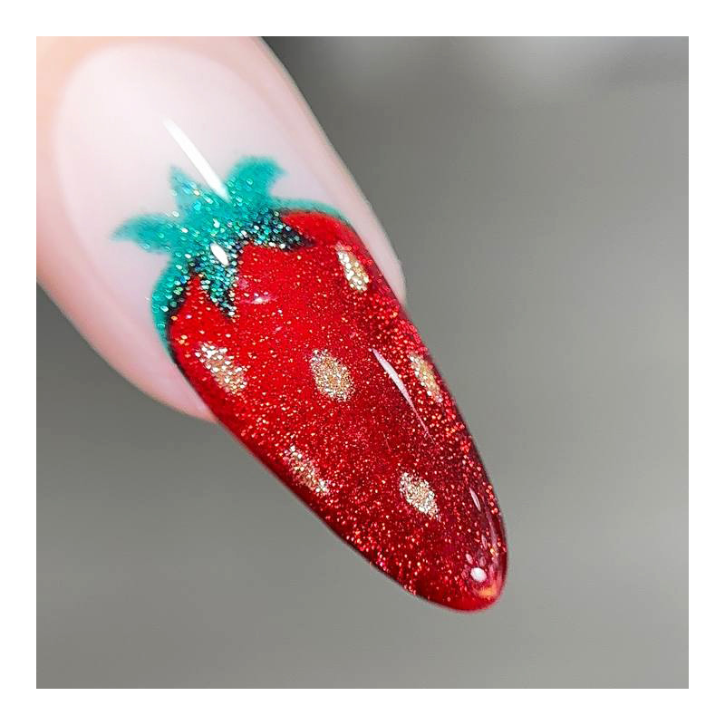 Esmaltes semipermanentes con efecto ojo de gato, puedes usar el imán para obtener un diseño magnético, te recomiendo poner debajo un color de esmalte permanente de tono nude, pastel o incluso el mismo color de la base de refuerzo.