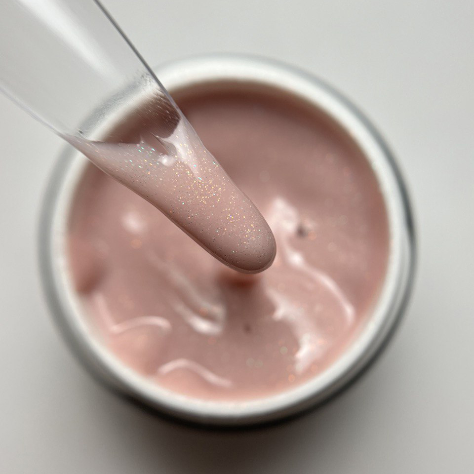 Gel constructor cover con shimmers brillantes.