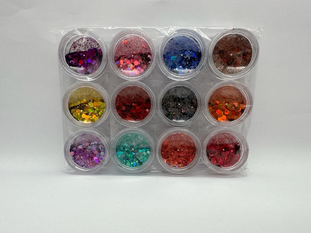 12 botes de purpurina para combinarlo como quieras