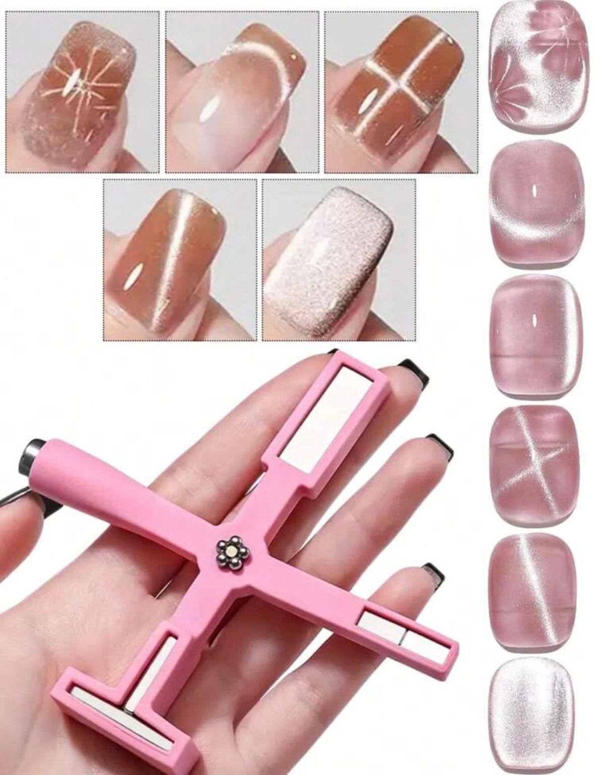 5 imanes diferentes para hacer diferentes diseños con ojo de gato
