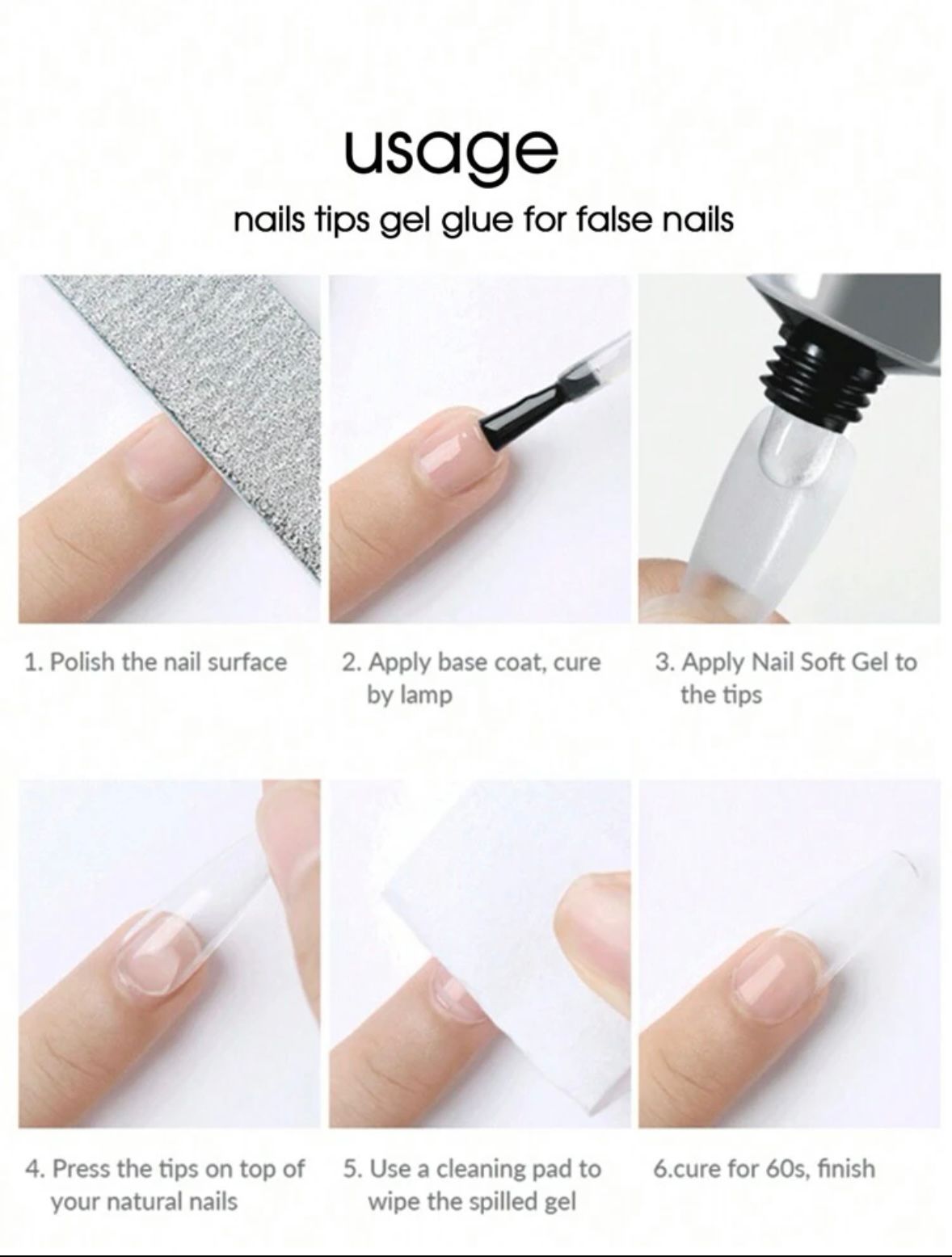Tips de gel para la técnica press on, x-press, nail press,soft gel… Puedes usarlos con base rubber, con polygel, con agrygel, gel o incluso acrílico, todas las técnicas sin limado.